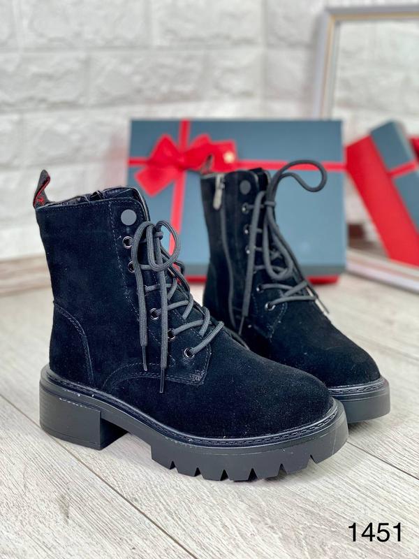 код 1451 Черевики Сезон - зима Матеріал - Натуральна замша Всередині натуральне хутро Висота 14см Підошва 4см\3,5см Колір чорний Виробник Фабричний Кітай 36-23.5см 37-24 см 38-24.5см 39-25см 40-25.5см