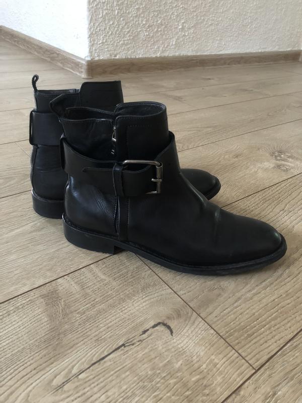 Шикарні дизайнерські ботінки Naviboot з високоякісної шкіри. Стильні, декоровані ремінцем, який за бажанням можна зняти. Лаконічні, стримані. Чорного кольору. Розмір 39. Стан нової речі.