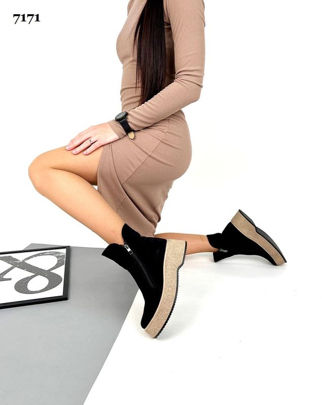 код 7171 Зимові черевики Натуральна замша усередині набивне хутро колір BLACK підошва спереду 3,5 см позаду 5,5 см, висота від п'яти 14 см 2 робочі блискавки, розміри 36-40 виробництво Україна 2250 грн "36 = 23,5см 37 = 24 см 38 = 24,5 см 39 = 25 - 25,5 см 40 = 26 см