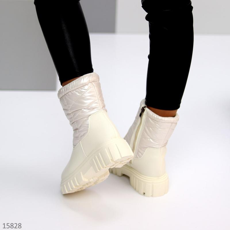 Черевики Розміри: 36-41 Матеріал: екошкіра/плащівка Всередині: напівшерсть 70/30 Сезон: зима Колір: молочний Висота від п’ятки: 16,5см Підошва: 5,5см/4см На середню стопу Розмір у розмір 36-23 см 37-24 см 38-24,5 см 39-25 см 40-25,5 см 41-26 см