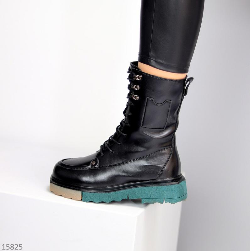 Черевики Розміри: 36-41 Матеріал: екошкіра Всередині: екохутро Сезон: зима Колір: чорний Висота від п’ятки: 19см Підошва: 4,5см/2,5см На середню стопу Маломірять 36-23 см 37-23,5 см 38-24 см 39-24,5 см 40-25 см 41-25,5 см