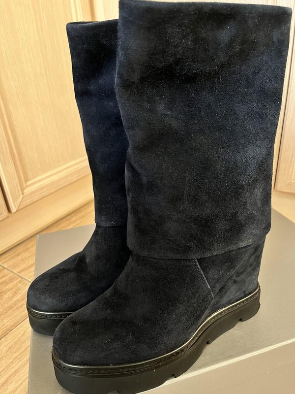 Ботинки натуральные замша , внутри цигейка, цвет темно-синий ,указан размер 37 маломерки, четко на 36 идут ! Состояние очень хорошее .