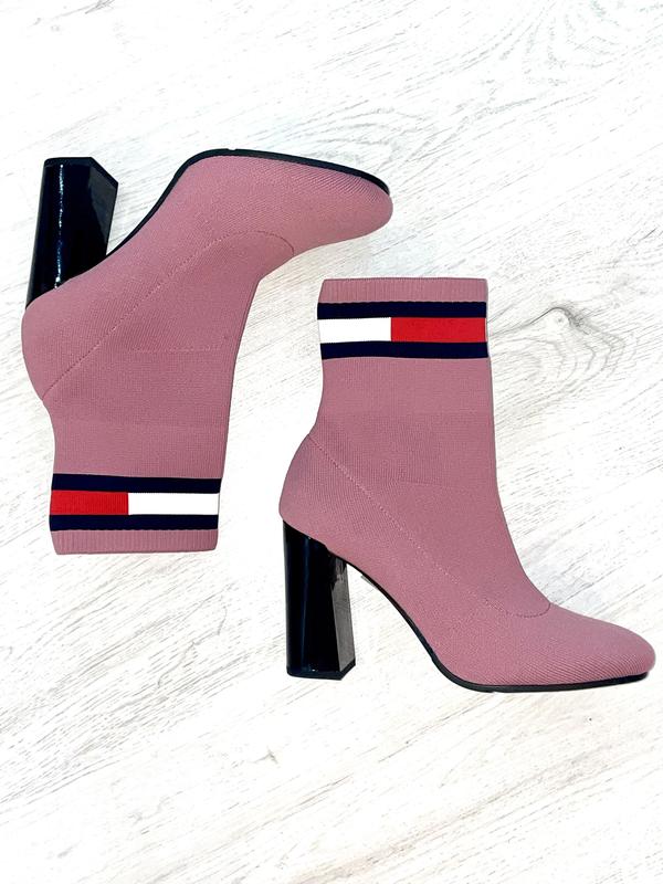 Новые ботинки на каблуке, бренда томми хильфигер (tommy hilfiger) Размер европейской секти 39 25.5 по стельке Сезон ботинок вернулся, и Tommy Jeans поставляет товар! Вязаные ботинки могут похвастаться гладким розовым верхом из водостойкого переработанного полиэстера, массивным блочным каблуком и культовым логотипом. Этот крой шикарный и утонченный - мы его оцениваем! ВЕРХ: переработанный полиэстер ПОДКЛАДКА: Переработанный хлопок ТЕХНИЧЕСКАЯ ХАРАКТЕРИСТИКА: водостойкий ТЕХНИЧЕСКАЯ ХАРАКТЕРИСТИКА: Переработанный полиуретан и стелька из полиуретана. Каблук: 9см Цвет: черный, розовый.