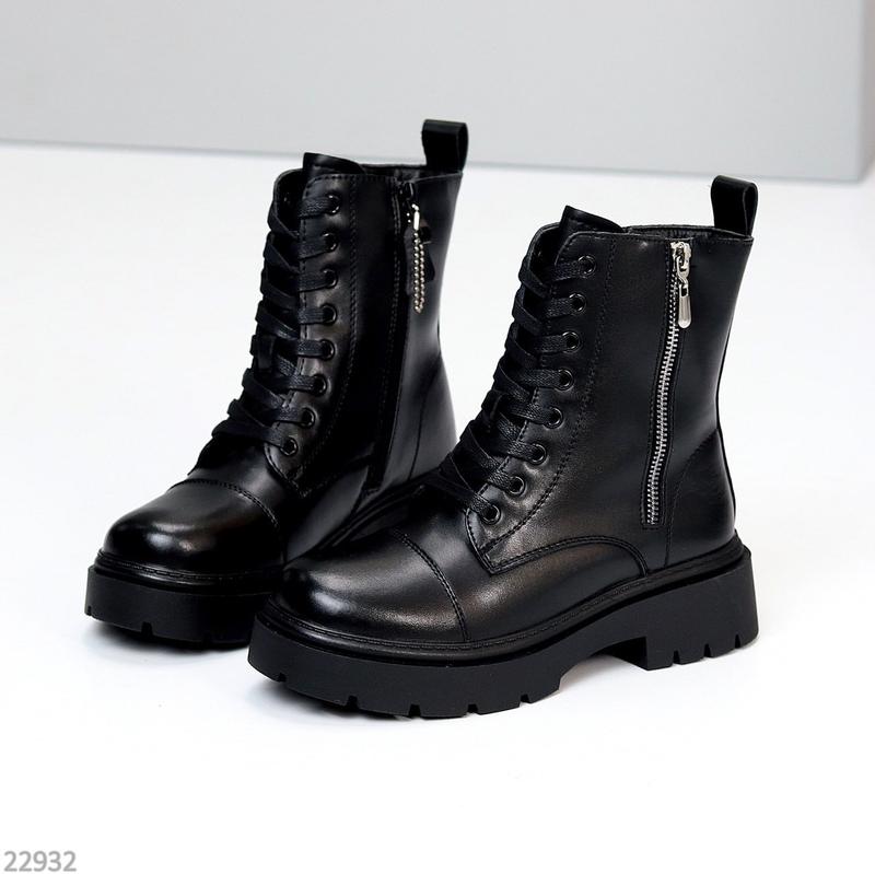 Черевики арт 22932 Розміри: 36-41 Матеріал: натур.шкіра АБО замш Всередині: екохутро Сезон: зима Колір: чорний Висота від п’ятки: 15см Підошва: 5см/3см Робоча блискавка на внутрішній стороні Виробник Фабричний Китай На середню стопу Розмір у розмір 36-23,5 см 37-24 см 38-24,5 см 39-25 см 40-25,5 см 41-26 см &24