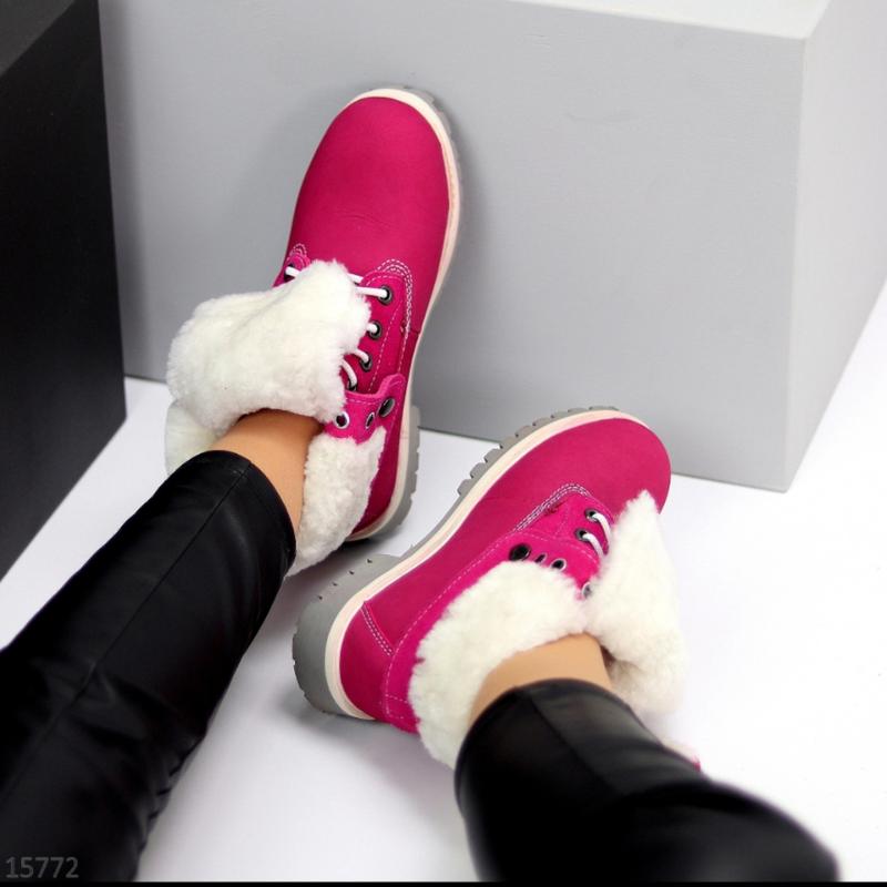 Код 15772 Розміри 37-41 Черевики "Candy" Матеріал - НАТУР. ЗАМША/Еконубук Всередині - Екохутро Сезон - Зима Колір - Фуксія Висота від п’ятки - 11,5см/19см Підошва - 3,5см/2см Заміри прописані за результатами примірки на стопу На середню стопу Розмір у розмір На середню стопу 37-24 38-24,5 39-25,5 40-26 41-26,5 820 грн код2005(шп)