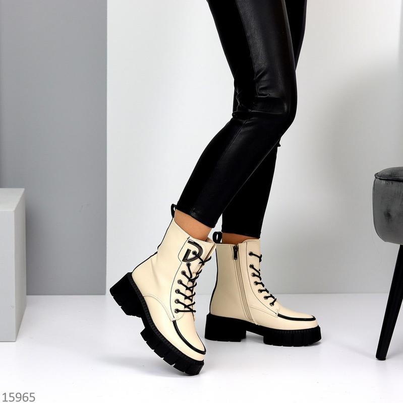 Черевики Розміри: 36-41 Матеріал: екошкіра Всередині: екохутро Сезон: зима Колір: світлий беж Висота від п’ятки: 15,5см Підошва: 6см/3,5см На середню та більш вузьку стопу Розмір у розмір 36-23,5 см 37-24 см 38-24,5 см 39-25 см 40-25,5 см 41-26 см