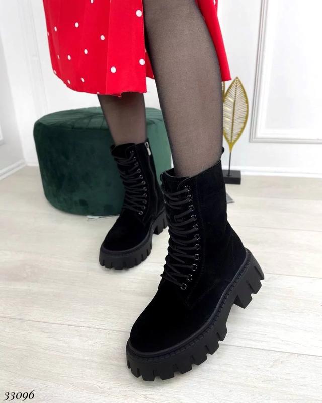 💰ціна 1750 грн Черевики зимові. Утеплені натуральним хутром Колір: чорний Матеріал: натуральна замша Сезонність:зима Код товару: 33096 ▪️ Висота підошви ззаду: 6см ▪️Висота спереду: 3,5см ▪️Висота від п'яти: 15см Розмірна сітка : 36-23,5; 37-24; 38-24,5; 39-25; 40-26; 41-26,5см Фан