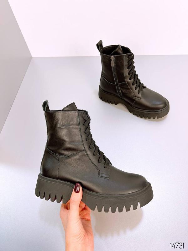 Код 14731 Черевики ЗИМА Натуральна шкіра Колір Black Висота від підошви 14,5см Підошва 4,5-3,5см Усередині хутро Розмір у розмір 36-23,5см 37-24см 38-24,5см 39-25см 40-25,5см