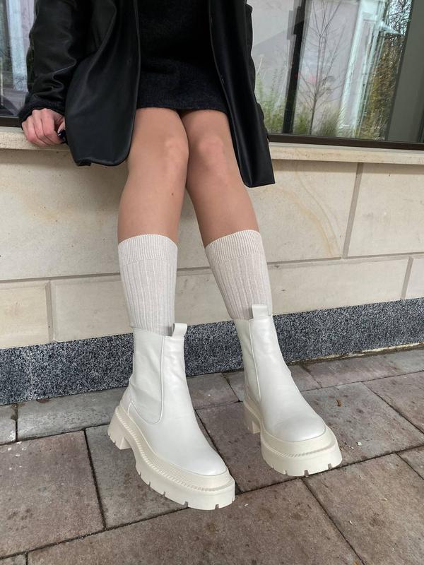 Теплі черевики челсі на резинці,чоботи молочні шкіряні жіночі зимові (зима 2022-2023) для...