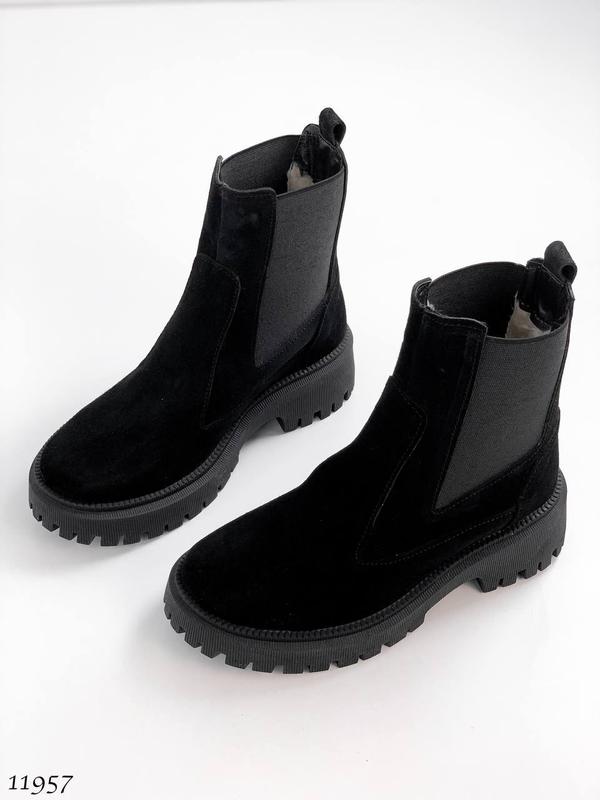 Зимові челсі, колір: BLACK, матеріал: НАТУР. ЗАМША, всередині: набивне хутро (у складі 30% овчини), висота від п'яти 14,5 см, підошва: спереду 2,5 см, позаду 4,5 см, вироб.- Україна 36= 23,3 см 37= 24 см 38= 24,3 см 39= 25 см 40= 26 см 2170 грн