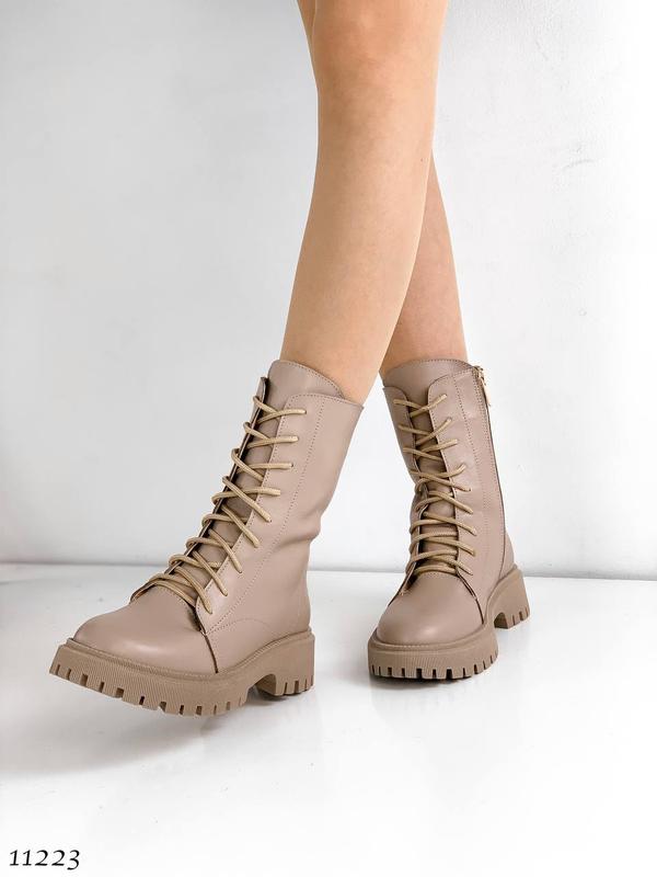 Новинка в наличии🌿 Код 11223 Зимние ботинки цвет: BEIGE, материал: НАТУР. ШКІРА, внутри: набивной мех (в составе 30% овчины), сбоку рабочая молния высота от пятки 19,5 см подошва: спереди 3 см позаду 4,5 см изделия.- Украина 37= 24 см 38= 24,5 см 39= 25,5 см 40= 26 см