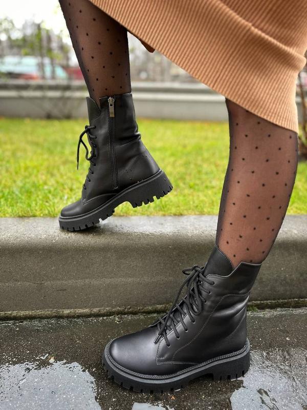 Новинка в наявності 🔥 Матеріал: натуральна шкіра Колір : чорний підошва: 4 см, спереду: 2,5 см висота від п'ятки: 16 см всередині набивна вовна(40-60% натуральная вовна) Виробництво Україна 36-23,5 см 37-24 см 38-24,5 см 39-25,5 см 40-26 см