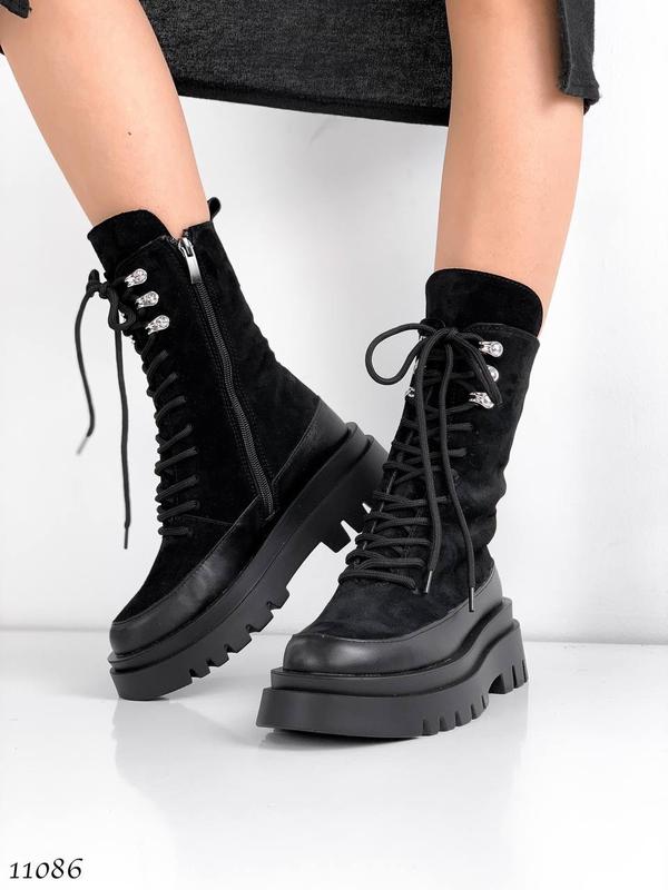 ✔️ Код 11086 Зимние ботинки, цвет: BLACK материал: НАТУР. ЗАМША/НАТУР.ШКІРА, внутри: набивной мех (в составе 30% овчины), сбоку рабочая молния, высота от пятки 20 см, подошва: спереди 3 см, позаду 5,5 см, изделия. - Украина 36= 23,5 см 37= 24 см 38= 24,5 см 39= 25 см 40= 25,8 см 41= 26,5 см