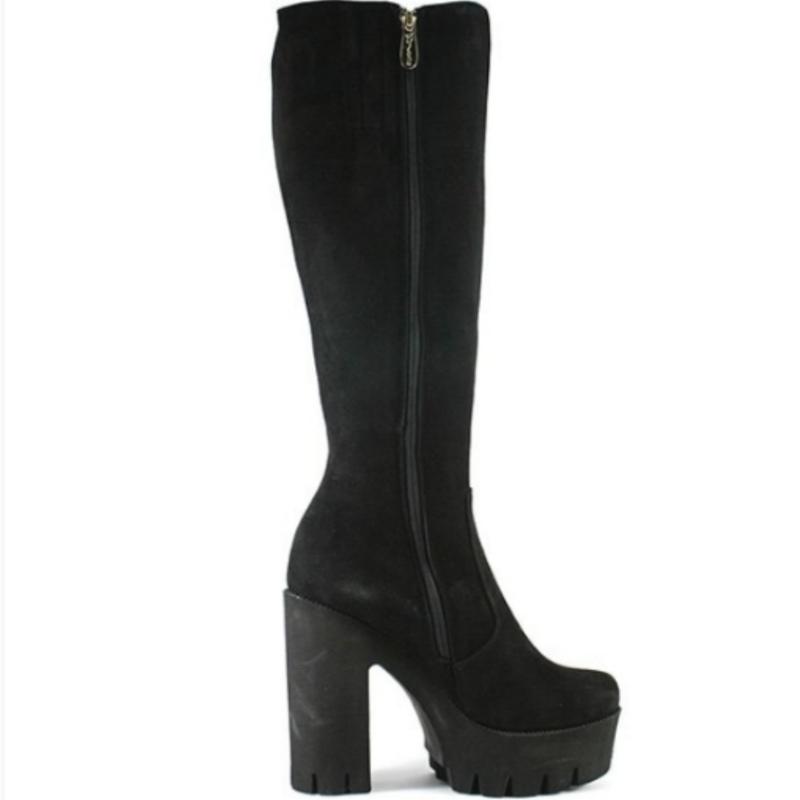 Чоботи зимові замшеві на високому каблуці, декоровані накаткою каменів, 38 розмір. В ідеальному стані.