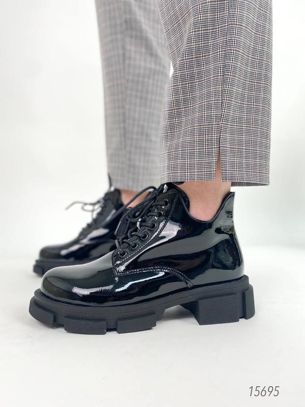 НОВИНКА В НАЯВНОСТІ 🌿 Черевики чорні лакові Арт: 15695 Колір: чорний Матеріал: НАТУРАЛЬНА ШКІРА - лак Усередині: текстиль Висота від п'яти: 10,5см Підошва: 2,5-4см Розмірний ряд з 36 по 41р. 36р. - 23,5см 37р. - 24см 38р. - 24,5см 39р. - 25см 40р. - 25,5см 41р. - 26см