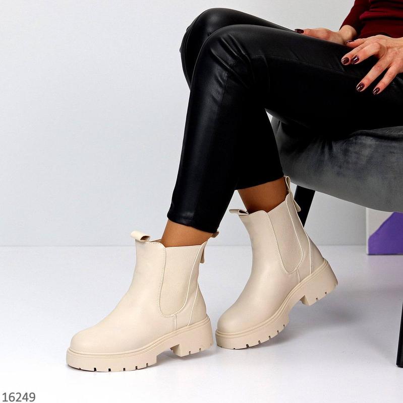 Материал - Эко кожа / Эластичные вставки по бокам Внутри - НАТУР. ХУТРО Сезон - Зима Цвет - Светлый беж Высота от пятки - 14,5см Подошва - 5см/3см Замеры прописаны по результатам примерки на стопу На среднюю стопу Размер в размер 36- 23,5 37- 24 38-24,5 39-25,5 40-26 41-26,5