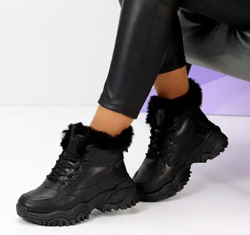 Спортивные ботинки Материал - Эко кожа Внутри - Экохутро Сезон - Зима Цвет - Черный Высота от пятки - 10см Подошва - 4,5см/3см На среднюю стопу Маломерят 36-23 37-23,5 38-24 39-24,5 40-25 41-26