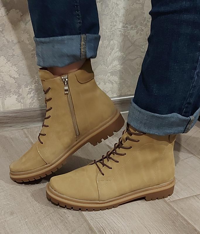 черевики з нубуку,в середині байка. Довжина по устільці 28см. підійдуть на широку ніжку.