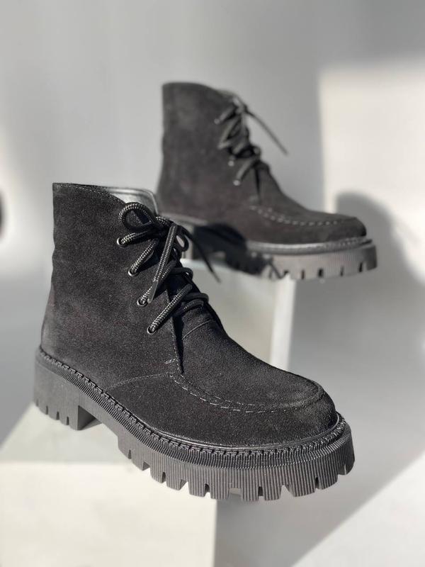 Замшевые черные демисезонные / осенние / весенние /теплые зимние ботинки на грубой трактор...