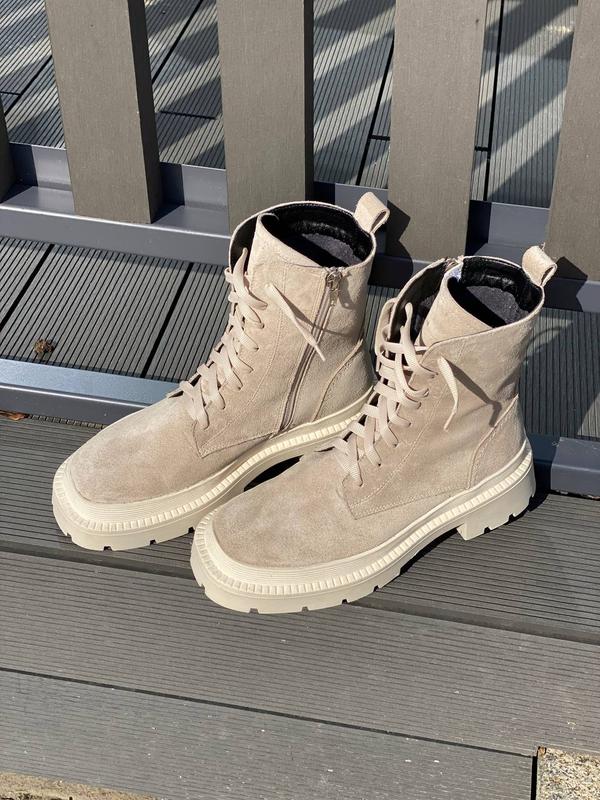 Замшевые світлі демісезонні /осінні/ весняні /теплі зимові черевики на грубій тракторній...