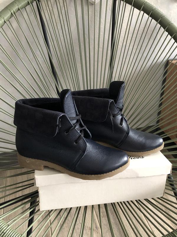 Удобные демисезонные ботинки. Подошва-полиуретан. 36р-23-23,5 см, 37р-23,5-24,5 см Верх-натур.кожа, внутри-байка. Цвет - темно-синий.