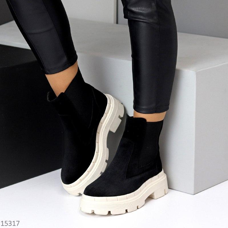 🥥🐱💜Встречаем новинки💜🐱🥥 Код 15316 - Черный Код 15317 - Черный/Светлый беж Код 15318 - Черный/Карамель Размеры 36-40 Черевики "Cagney" Материал - НАТУР. ЗАМША / Эластичные резинки по бокам Внутри - Ворсистый флис Сезон - Деми Высота от пятки - 13,5см Подошва - 5,5см/4см Производитель - Украина На среднюю стопу Размер в размер 36-23,5 37-24 38-24,5 39-25,5 40-26
