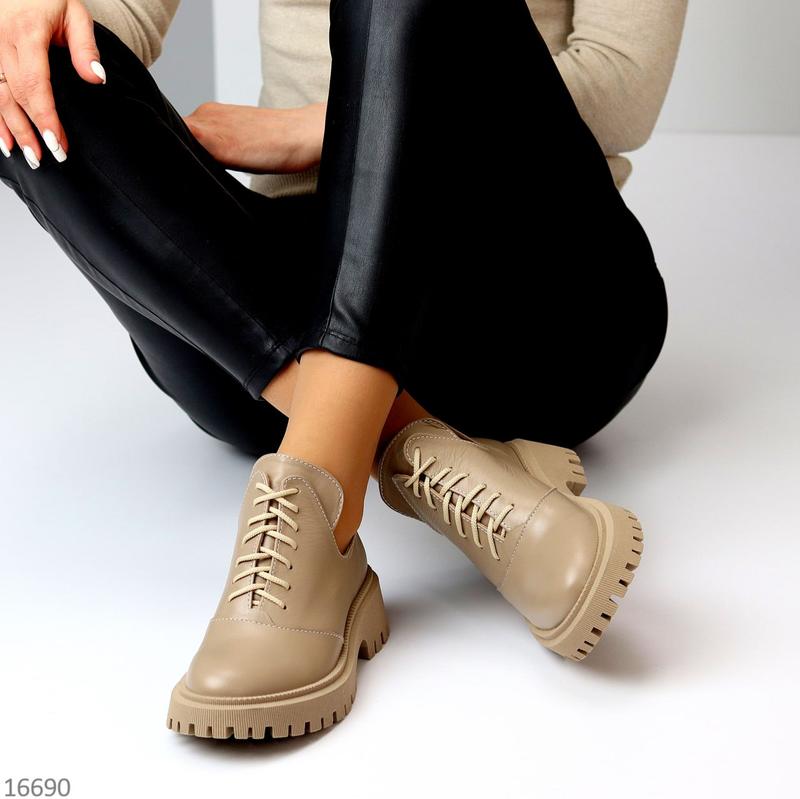 Туфли на шнурках арт. S 16690 Размеры: 36-40 Материал: натур кожа Внутри: натур кожный подклад Сезон: деми Цвет: темный беж Высота от пятки: 10см Подошва: 4,5см/3см Производитель: Украина На среднюю стопу Размер в размер 36-23 см 37-24 см 38-24,5 см 39-25 см 40-26 см Цена : 1520 грн