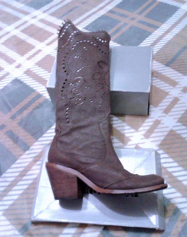 Перфорированные кожанные сапоги отличный вариант для осень-весна, каблук - 6см