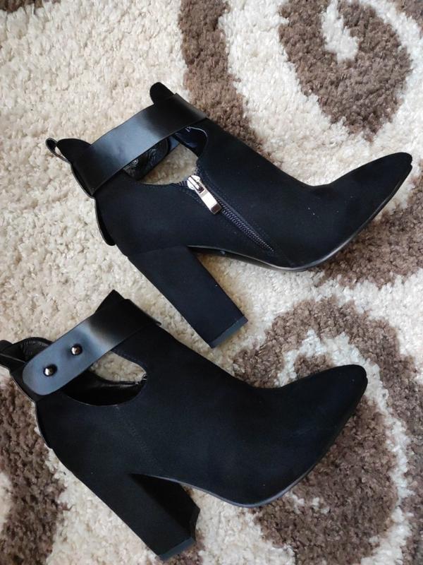 Черевики размер: 36 ( 23.5 см стелька) цвет: черный верх: натуральная замша низ: поліуретан подкладка: байка высота каблука: 10 см