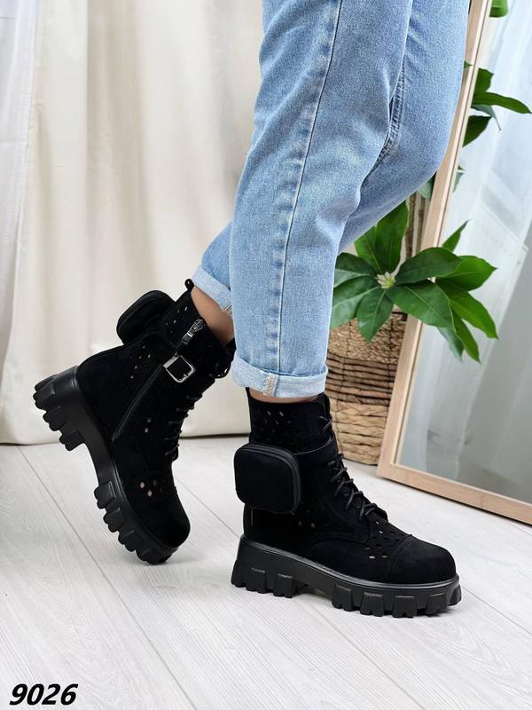 Ждем на ваши заказы 💋 ✅ТОВАР В НАЯВНОСТИ, Быстрая Отправка 😘 ❣️❣️❣️размеры 36 37 38 38 39 40 Код 9026 Ботинки Материал эко замша Цвет черный Сезон деми Сквозная перфорация Высота обуви от пятки 17 см Высота подошвы 5,5 см На шнуровке + молния Размер по сетке: 36 - 23,0 см 37 - 24,0 см 38 - 24.5 см 39 - 25,0 см 40 - 25,5 см