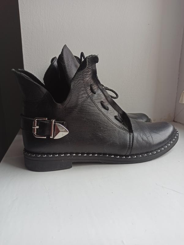 Обувь в идеальном состоянии. Присутствующие только следы носки сверху, на фото видно и на левом ботинке поторочилась шнуровка в завершении. Натуральная кожа. Внутри байка 39 размер (стелька 25,5 см) Производитель Турция