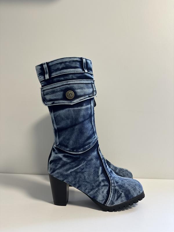 Высокие винтажные ботинки на каблуке джинсовые деним винтаж гранж ретро