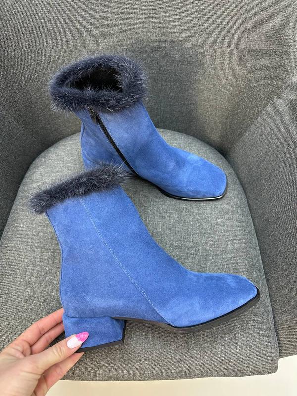 Эксклюзивные ботинки из итальянской кожи и замши женские с норкой