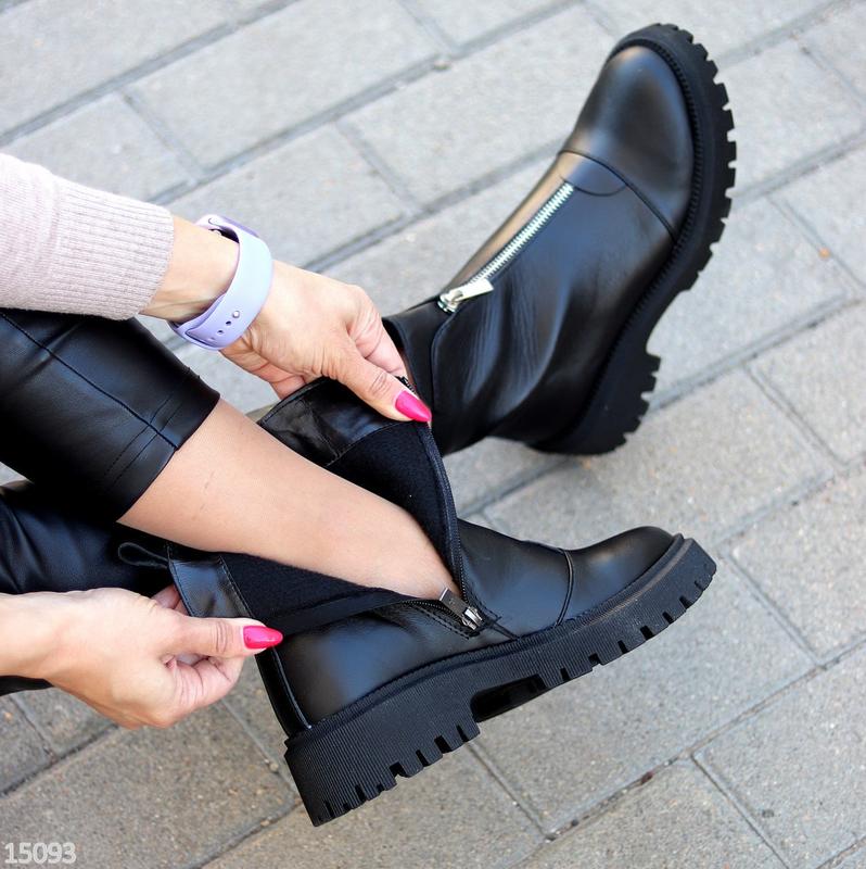 Размеры 36-40 Черевики "Mona" Материал - НАТУР. КОЖИРА Внутри - Флис Сезон - Деми Цвет - Черный Высота от пятки - 13см Подошва - 5см/3см Рабочая молния сбоку, спереди - декор Производитель - Украина На среднюю стопу Размер в размер 36-23 37-24 38-24,5 39-25 40-26 1390 грн