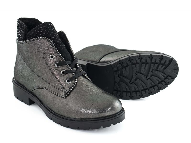 Стильные женские немецкие ботинки из натуральной кожи утепленные шерстью. Обувь на шнуровке. С серебряным напылением. Германия, кожа, черный, зима, шерсть