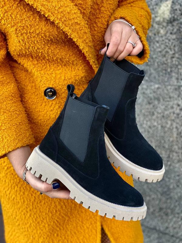 ⚫️код 8253 Черевики челсі Нереально круті. Вони стануть твоїми улюбленими Матеріал: НАТУР ЗАМШ Сезон: Зима Підошва 5 см Висота виробу:14 см Колір: чорний Р-сть 36-40 36-23,5 см 37- 24 см 38-24,5 см 39-25,5 см 40-26 см