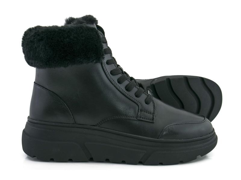 Классические женские ботинки из гладкой натуральной кожи в черном цвете. Обувь утеплена овчиной, на шнуровке. Германия, кожа, черный, зима, овчина