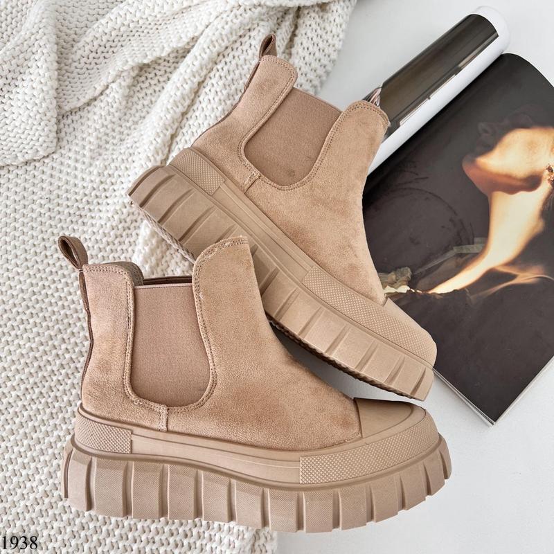 новинка ❤️розпродаж Жіночі черевики Код 1938 Колір: Бежевий Матеріал: еко.замша Всередині: текстиль Підошва: 6см Висота 9,5см Розмірний ряд з 36 по 41р. Фабрична коробка Виробник КНР 36= 23,5 см 37= 24 см 38= 24,5 см 39= 25,5 см 40= 26 см 41=26,5см