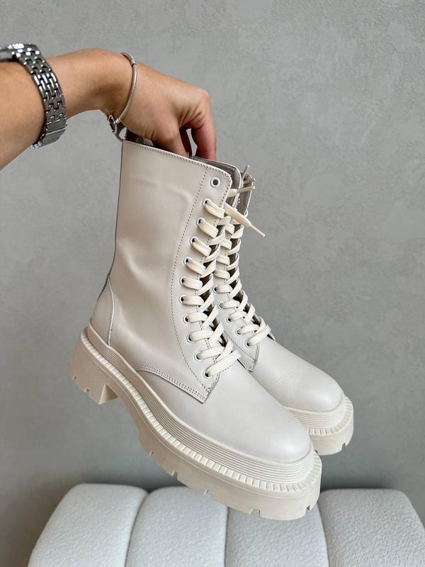Берцы в новом слишком стильном исполнении🤤 ЗИМА❄️ Арт: 10434 ДЕМІ🍁 Арт: 10861 Цвет: молочный Размеры: 36-23.5см 37-24см 38-24.5см 39-25см 40-25.5см Материал: натуральная кожа Внутри: натуральный мех (набивной) Подошва: Резиновместимая Виробник: Украіна 🇺🇦 🌱подошва: 4,5см 🕊полная высота изделия: 25см