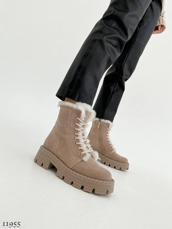Ботинки зима зимние натуральный замш бежевые на шнурках высокой подошве платформе танкетке...