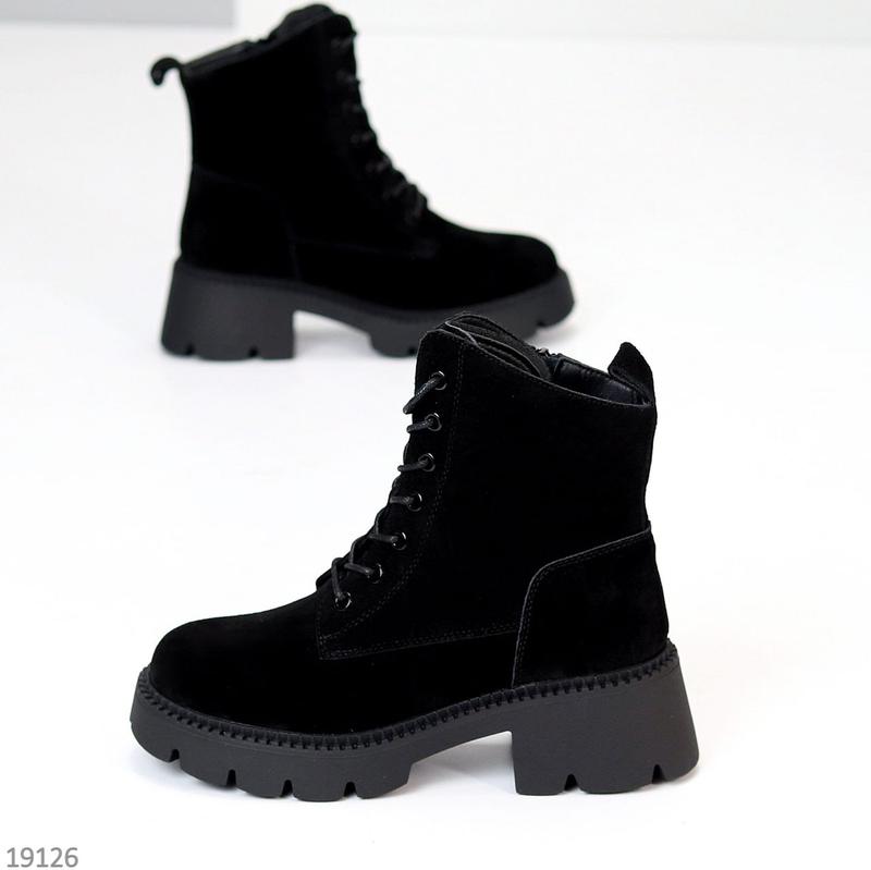Код 19126 Размеры 36-41 Черевики "Cantata" Материал - НАТУР. ЗАМША Внутри - Ворсистый флис Сезон - Деми Цвет - Черный Высота от пятки - 12,5см Подошва - 6см/3см Производитель - Фабричный Китай Замеры прописаны по результатам примерки на стопу На среднюю стопу Размер в размер 36-23,5 37-24 38-24,5 39-25 40-25,5 41-26