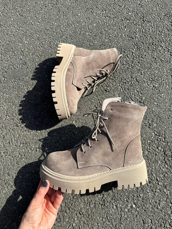 Стильные серо-бежевые,латое ботинки женские деми-зима,осенные,зимние, замшевые/замша-женск...