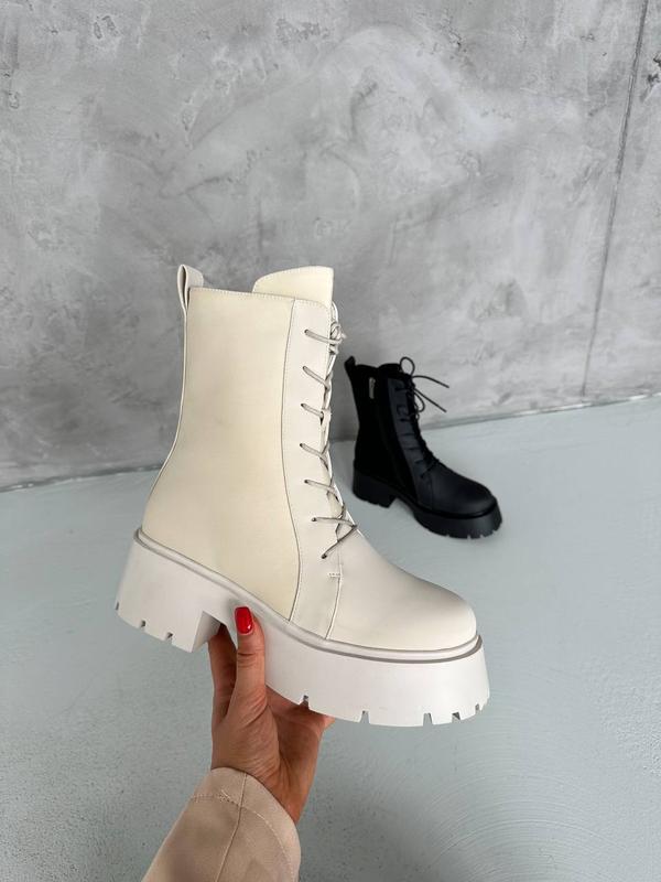 Новинка😻 Стильные зимние ботинки под бренд😍 Черный❄️ Арт: 10898 Молочный❄️ Арт: 10899 🔖высота изделия полная: 25см 🔖высота подошвы: 4/6см Размеры: 36-23.5см 37-24см 38-24.5см 39-25см 40-25.5см Материал: эко кожа +текстиль Внутри: плотный мех Виробник: Китай