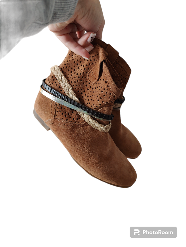 Ботинки замша натуральная, коричневого цвета с декором. Новые. М'які.