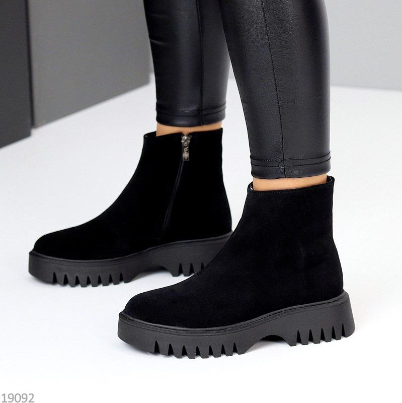 Размеры 36-40 Черевики "Arcana" Материал - НАТУР. ЗАМША Внутри - Ворсистый флис Сезон - Деми Цвет - Черный Высота от пятки - 13см Подошва - 4,5см/3см Производитель - Украина На среднюю стопу Размер в размер 36-23,5 37-24 38-24,5 39-25,5 40-26