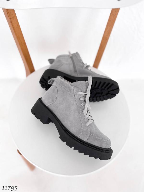 36= 23 см Акция 😍1399 грн Код 11795 Демисезонные ботинки цвет: СЕРЫЙ материал: НАТУР. ЗАМША внутри: байка сбоку рабочая молния высота от пятки 10 см подошва: спереди 2 см позаду 4 см изделия. -Украина Вага 36 р = 1кг