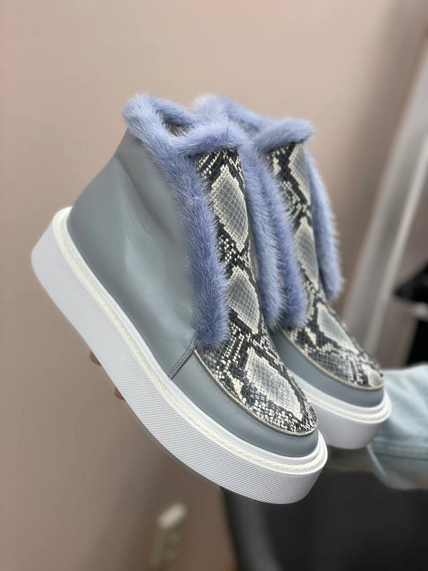 Эксклюзивные ботинки из итальянской кожи и замши женские с норкой