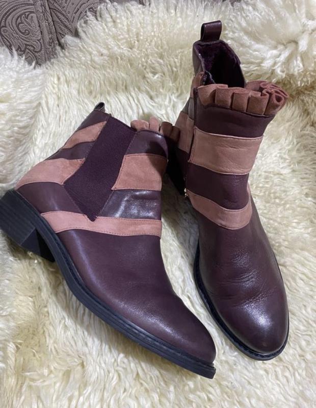Незвичайні, шкіряні, дуже зручні, на середню ногу, осінньо-весняні черевики. Повний 41 р. Висота з підбором 17, 5. Каблук 3. Стелька 26,3. Ширина по підошві 10
