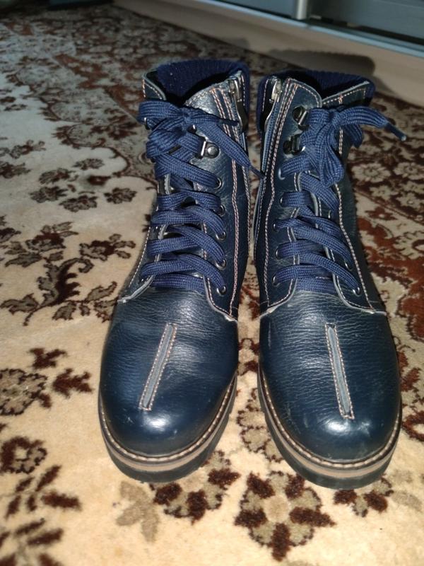 кожаные ботинки,цвет темно синий, размер 38 по стельке 23 см, утепленные состояние новых