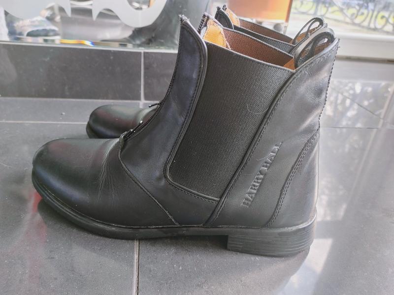 кожаные на замке спереди, на резинке по бокам не подобрался размер.так в идеальном состоянии сверху что с середины